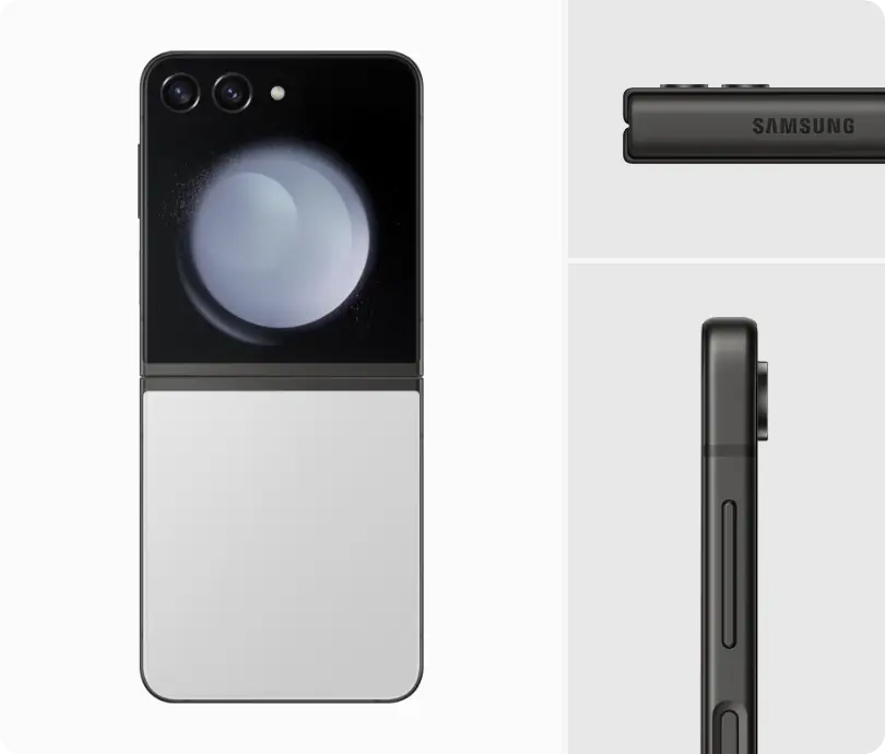 갤럭시 Z플립5는 전작과 동일한 외관을 지니고 있지만 근본적인 디자인 강화가 도입되어 상당한 변화를 보여줍니다. 주목할 점 중 하나는 접힌 상태에서의 커버 디스플레이가 확연히 확대되었다는 것입니다. 커버 전체를 강화유리로 마감함으로써 시각적으로 세련되고 깔끔한 외관을 강조하고 있습니다. 펼친 상태에서 뒷면을 살펴보면 삼성의 비스포크 냉장고 같은 디자인이 돋보입니다. 또한 기존 폴더블 스마트폰의 문제점 중 하나인 유격이 없이 정확히 접히는 11자 모양을 구현함으로써 세련된 외관과 기능성을 동시에 만족시킵니다.